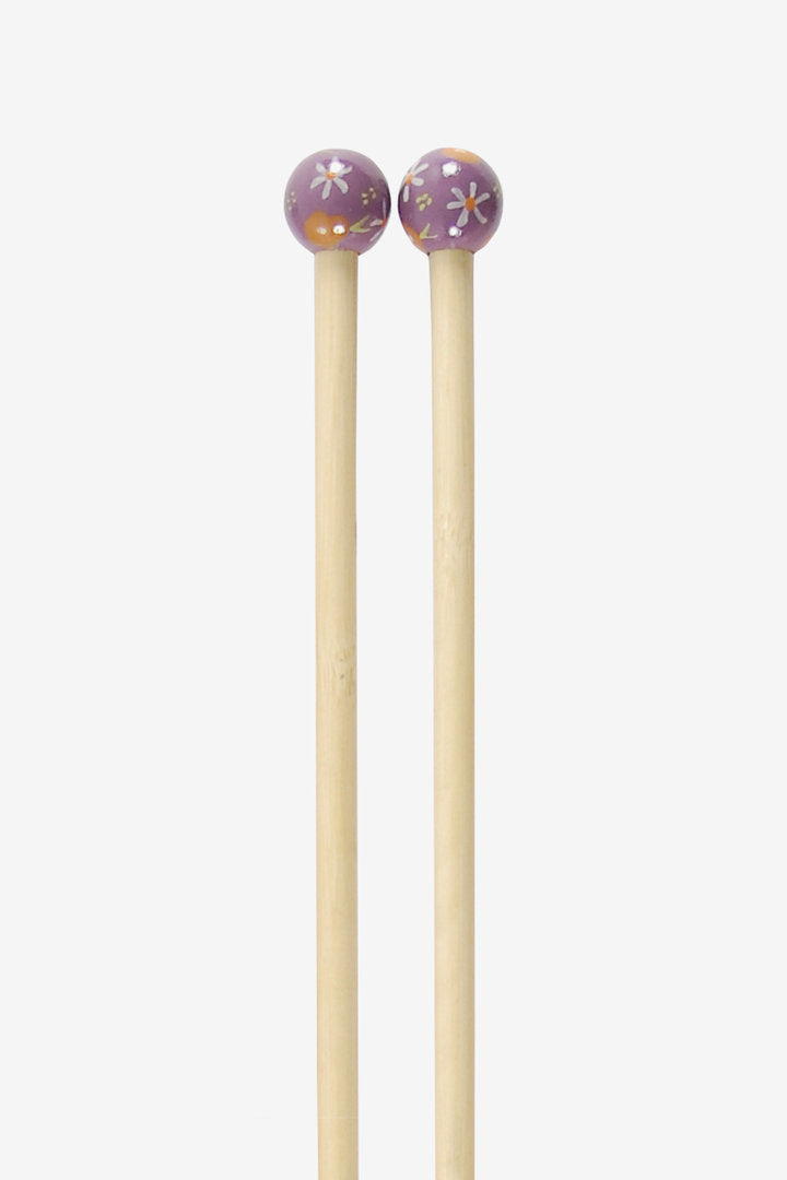 Agujas de bambú para tricot pintadas a mano. En la parte superior de la aguja tiene una bolita de bambú con flores pintadas a mano.